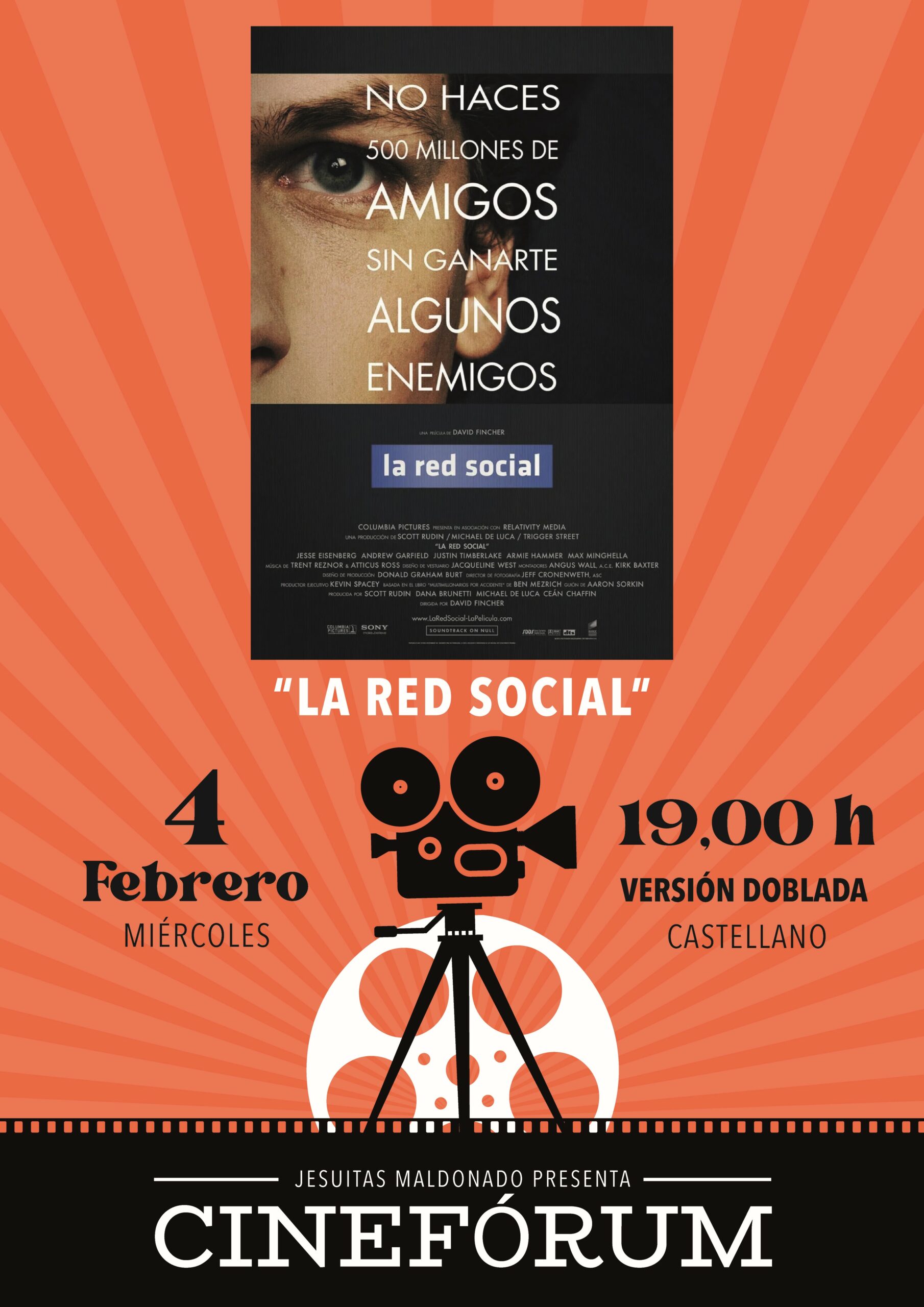 El día 4 de febrero tenemos una nueva proyección en el cinefórum, esta vez proyectaremos la película de «La red social»
