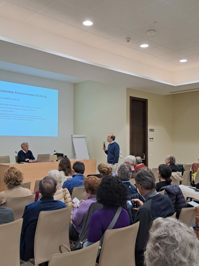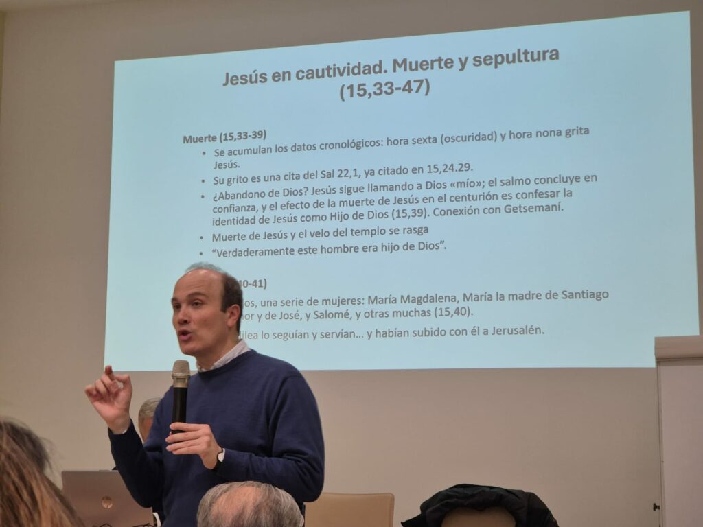 El pasado 7 de marzo se celebró la Jornada de Formación Bíblica, organizada por la Comunidad de Nazaret pero abierta a toda la parroquia, en la que Pablo Alonso sj, profesor de Sagrada Escritura en la Universidad Pontificia de Comillas, dio una clase magistral sobre El primer relato de la Pasión. ¿Por qué el evangelio de San Marcos dedica tantas páginas a esas 24h de la vida de Jesús? Seguramente porque la crucifixión del Mesías fue un hecho que descolocó a muchos y que necesitaba mucha explicación: era contraria al sentido del honor de las sociedades mediterráneas e incluso contradecía el texto de Deuteronomio que considera maldito al que cuelga de un madero.